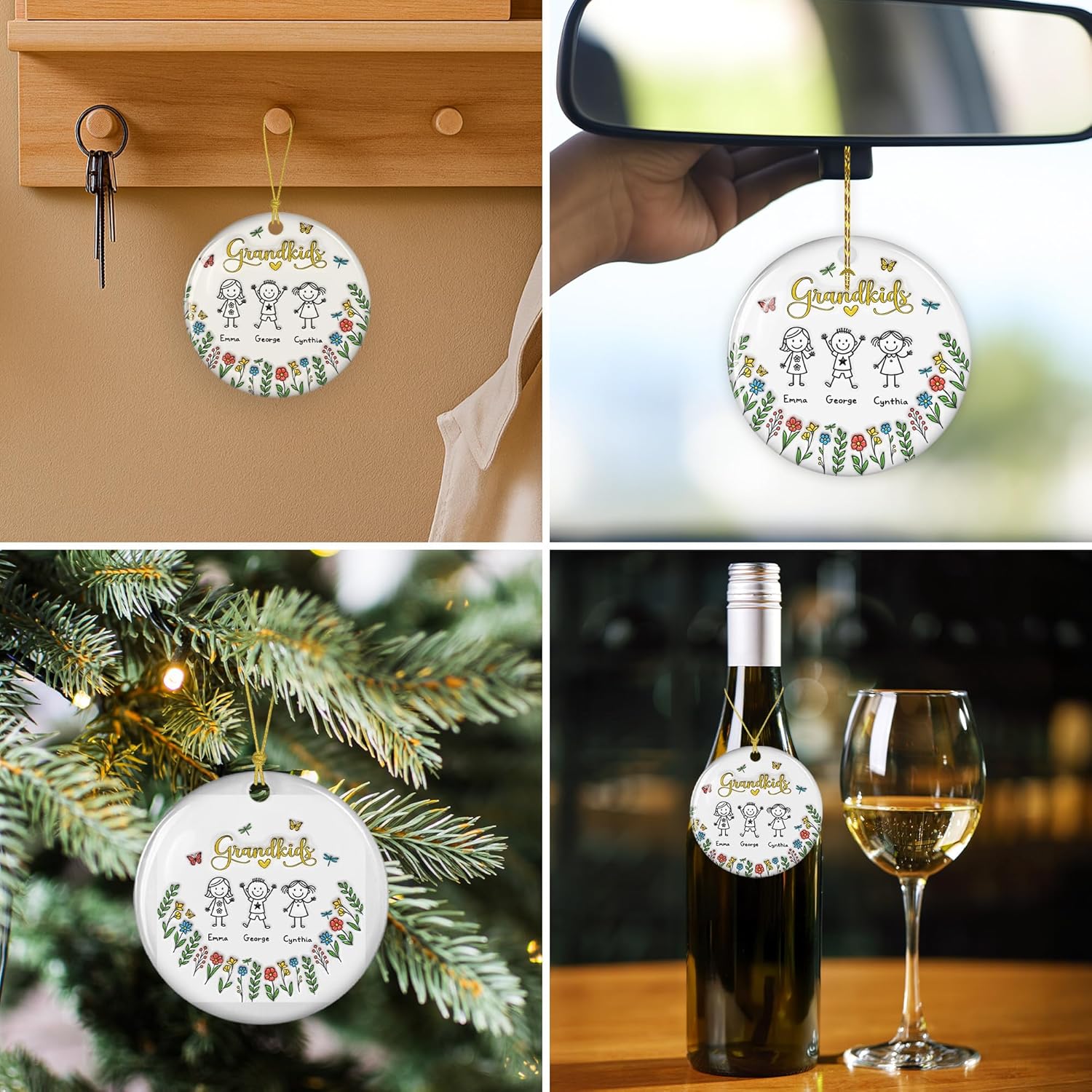 Grandkids Personalized Ceramic Ornament β Grandkids Christmas Ornament, Custom Holiday Keepsake, Family Tree Gift